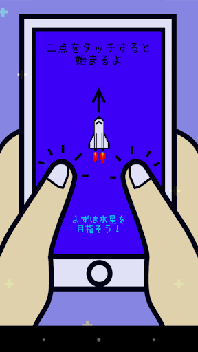 本作的遊戲目的是要操作從地球出發的太空梭經過太陽系各星球,看玩家可以飛得多遠!而操作方法只有開啟跟關閉左右噴射器而已。 觸碰畫面右側的話就會讓左邊的噴射器開啟,機體就會往右邊前進,觸碰左側的話則是開啟左邊的噴射器讓機體往左邊前進。想要直線前進的話只要觸碰畫面兩側即可。如果兩邊的噴射器都沒開啟的話,速度就會下降,當時速降到 0KM 的話就會 GAME OVER。
