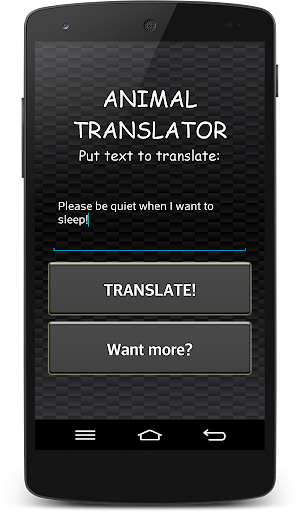 如果你想與動物溝通,您需要下載此 '動物翻譯' !它可以把你的言詞轉化為狗的語言或貓的語言 !你也可以翻譯鳥或鸚鵡 !所有你必須做它為動物和點擊輸入消息 '翻譯' !然後你會得到與翻譯消息 mp3。免費下載動物翻譯和翻譯你的動物 !