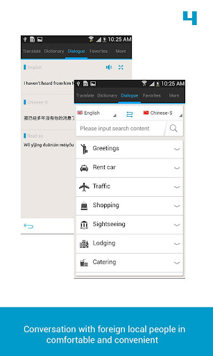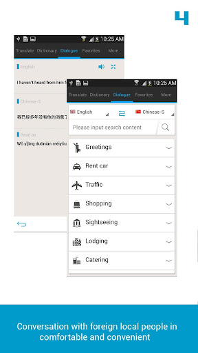 比如你出国到欧美,使用500多个情景对话基本上可以非常全面涵盖各种对话,比如和酒店服务员,商店营业员。若想做一些更定制的对话,则开启系统自带的语音输入,之后使用翻译功能,你就可以自如和国外当地的朋友展开对话了。