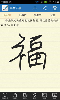 2)多种模式:提供文字、涂鸦、笔迹三种记事模式;