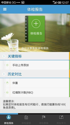 翼健康是中国电信推出的集手机预约挂号、体检管理、运动记录为一体的健康信息服务平台。翼健康体检客户端提供体检数据云端存储,重点指标趋势分析,体检报告专家解读,体检套餐一站式订购,健康尽在“掌”握!