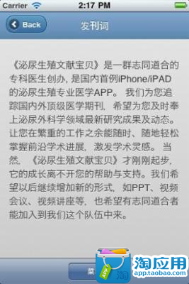 肾科文献宝贝 《肾科文献宝贝》提供最新的肾科相关疾病文献摘要,会议动态,临床话题,与视频。 说明: 《肾科文献宝贝》由一群志同道合的专科医生创办, 是国内首例iPhone/iPAD的肾科医生园地。本程序是一个移动电子书, 读者对象是肾科医生,内容覆盖期刊文献摘要、学术会议、博客、与视频等。内容每周更新数次。 虽然内容严肃,但是本程序保留轻松的风格与界面。希望您在忙碌的工作之余阅读宝贝,小憩片刻,又可充电。 【本周文献】 我们每周检索国内外的医学文献库,摘录并撰写成短文摘要,符合医生的"快读、微读"的阅读方式,帮助同侪医生掌握前沿学术进展。 【学术会议】 提供临床会议动态,包含会议通知预告,keynote主题,讲者信息。 【博客】 博客互动交流,分享经验,创建共同关注的话题。医生同侪之间的沟通与交流,可以改善临床,提高医疗服务水平,请大家多参与。 【会议视频】 忙碌的您可以在手机上观看学术会议的视频。随着国内外的学术交流会议增加,您可以兼顾临床与会议,两不相误。 【本周汇编】为您提供可离线浏览的本周精选内容。(离线浏览要求Android版本2.2或以上)