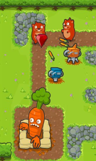 胡萝卜保卫战:在一片蔬菜园中,有一个即将成熟的胡萝卜王,面临成熟的胡萝卜王切陷入了危机之中,蔬菜园突然来了一群外星地鼠,它们乘坐微型UFO来到蔬菜园,打算窃取胡萝卜王;还好机智的胡萝卜王有一批胡萝卜防御塔,能充分抵御外星地鼠的突袭但是它一个人能力有限,希望你能帮帮它哦!如果胡萝卜成熟会有辛勤农夫前来采摘!