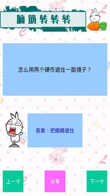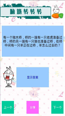 3、放松心情,在紧张的工作环境中,为何不来几个脑筋急转弯来放松一下自己呢; 使用中遇到的任何问题,欢迎反馈!