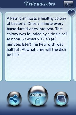 脑筋急转弯应用的难题,这需要几个小时,甚至数天时间来解决,但被鼓励,初中教育是足以应付几乎所有的困惑。有很多采访的难题,如果您打算在一家投资银行,咨询公司,高科技公司,或任何其他相关领域的采访,吸收脑筋急转弯所提供的,因为它可以在获得决定性的因素,提供。