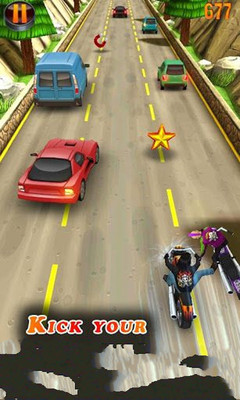.当两个敌对帮派骑自行车的人发生了冲突,会发生什么情况?那么,他们通过街道战斗赛车以最快的速度!您值得信赖的自行车头,面对对手在城市的街道荏苒车辆之间以惊人的速度和踢你的对手,直到他们倒在地上!成为无可争议的王者之路!但要小心的警察,不要让她的老公知道!你能持续多久不被逮住由警察以极快的速度之间的车辆和其他旅行时,追逐你的对手吗?如果管理不压在一些车辆,那么你就会有各种各样的项目将授予你超过别人的优势,首先,所有的特殊供应超啤酒,这将使你坚不可摧的!女士们,先生们,开始您的发动机和.. 从事这个疯狂的和致命的种族!-享受美丽的全高清和3D图形与壮观的特殊效果!-收集硬币购买的几个项目和电源,以及各种虚拟商店-提速,减速,通过交通拉链,逃避警察和冲刺踢你的对手于死地!-两种游戏模式和几个解开的项目!- Heyzap社交游戏与全球排行榜和球员的挑战