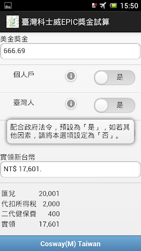 獎金呢?美金兌換成新台幣之後,扣去稅捐、二代保險等等,到底