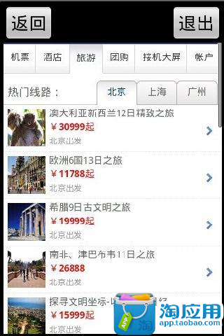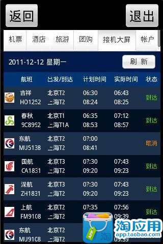 描述: 用户可通过航空旅行手机应用,在一分钟内轻松完成预定、支付、退票等诸多流程。该包含了大量的可以让用户更便捷、更高效的查询特价票的功能。同时,还支持航班动态查询、全国机场信息查询、在线咨询、社区、航班时刻查询等等一系列丰富用户体验的功能,保证用户的出行无忧。 同时该软件继承了酒店、旅游、团购、接机大厅等新功能!让您随时随地尊享服务!