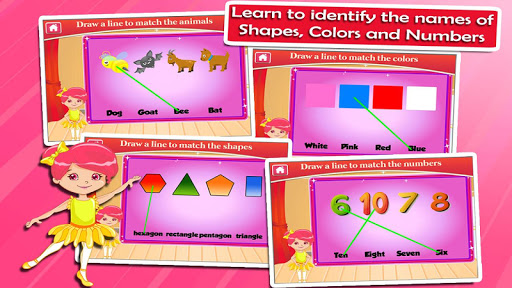 我的小芭蕾舞星幼儿园学习游戏教幼儿园学习的基础 - 从学前活动,迈高和更先进一点。这些有趣的和令人兴奋的演习涉及的对象,颜色,形状和动物的模式识别和顺序,基本的拼写,匹配正确的名字和各种旨在发展幼儿识字具有挑战性的数学概念。