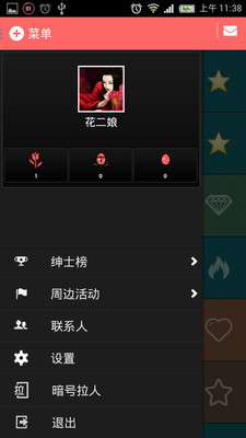 【周边活动】 五湖四海 男士发起活动,赠送玫瑰 唱KTV 喝一杯 旅游 逛街 吃饭 看电影 喝茶 运动 聊天 女士发起活动,收到玫瑰