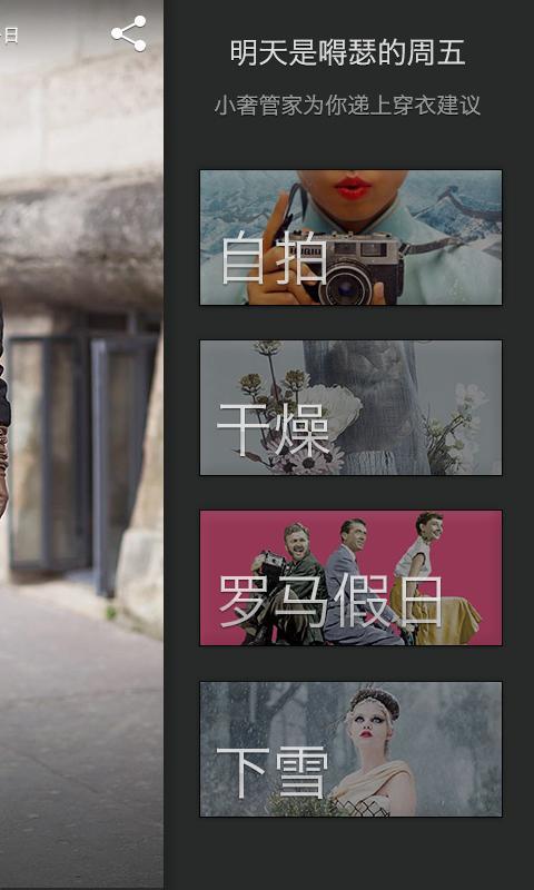 天气衣报专为女性解决出门穿衣难的问题。从个性化测试、全球街拍示范以及每日心情路线出发,提供出门