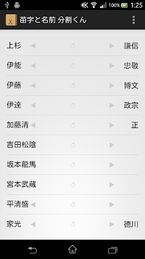 アドレス帳(電話帳) の連絡先の 苗字と名前を分割するためのアプリです。