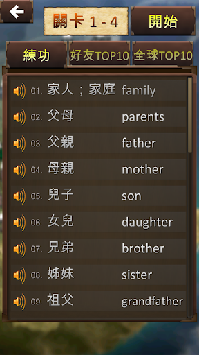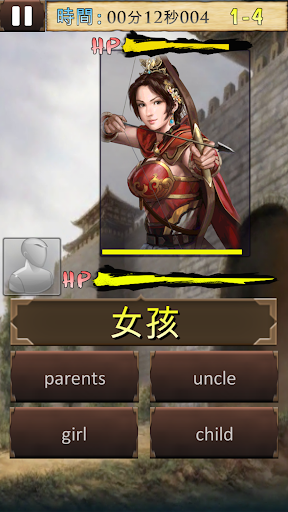 每一關皆會由一個武將把守,該武將會使用英文單字來阻擋你,單字數量就是該武將生命值,只要答對中翻英或者英翻中答案,