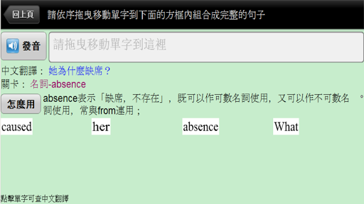 「英文移動」APP,是一個利用拼圖的遊戲方式來達到學習英文的教育型APP,將一句完整的英文拆解成一個個的單字,玩家要把單字用拖曳移動的方式依序組合成一個完整的句子即可過關。