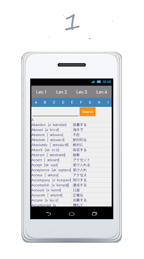 英検2・準1級に必須の英単語を1300語をレベル別に収録レベル別に収録しています。