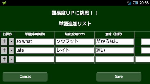 【単語追加】を押して新たな単語を登録しましょう。どんどん追加登録し、たくさんの単語を覚えましょう!