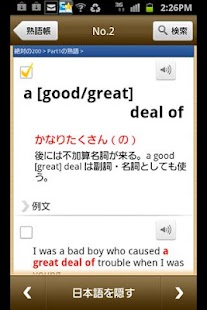 “日本語”“英語”を隠したり、発音は自動読み上げ「ON/OFF」が可能なため、暗記に最適。さらに実践に即した受験・入試の長文や英熟語問題の例文を厳選。文中での英熟語の用法も自然と身につきます。音声により英語に耳を慣らすとヒアリング力も伸びます