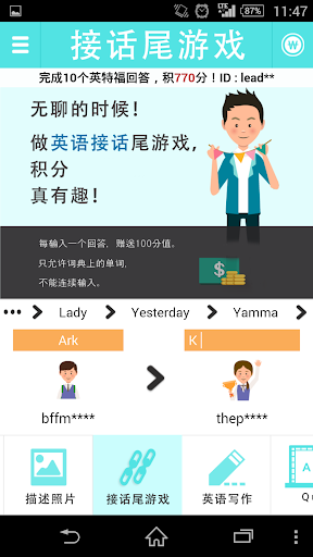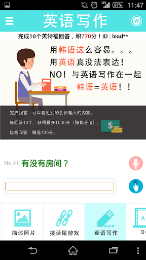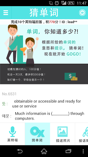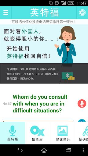 回答的时候,按MIC按钮就可以听到问题的英语发音,