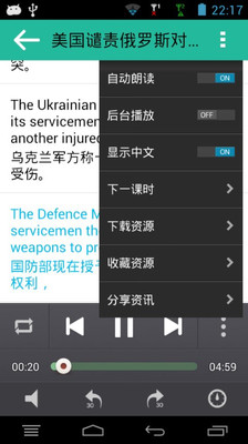 英语电台收集了 VOA常速 , VOA慢速 , BBC , CNN , NPR , CR I, AP News,科学美国人,pbs高端访谈,经济学人,等双语新闻信息。全部的广播信息均带LRC或TXT字幕,练习英语听力利器,同时还可以了解国内外时事新闻。