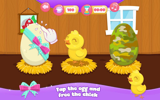 确保你的宝贝一直是快乐的,并且不要忘记和她玩一些互动的、教育性的游戏。以一个有趣的动物声音配对游戏作为游戏的开始,然后继续和她玩数羊或者试着抓住滑溜溜的小猪的游戏,最后以一个有趣的孵化蛋游戏完成这次冒险。