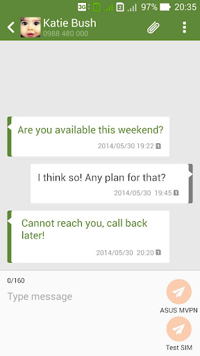 - 超簡單,更聰明:版面明晰簡潔的ZenUI介面,讓您在撰寫簡訊時有最佳視覺體驗,編輯SMS/MMS時,華碩 ZenUI 簡訊會依簡訊狀態自動調整傳送鍵的形式,編輯狀態一目瞭然!