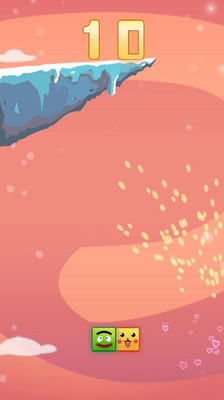 玩家的游戏主角是一对可爱的能伸能缩的方块,它们彼此相爱,在危险的悬崖峭壁间穿行,一旦碰壁就会爆炸死亡。当通过一定数量的危险石壁后玩家会得到有成就感的鼓励,但同时它们的行进速度也会加快,旅途将变得越来越危险。