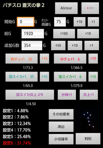 パチスロ蒼天の拳2用設定判別アプリです。