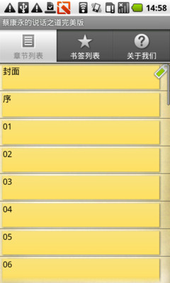本书是蔡康永的第一本实用书,在“说话”多年之后,首次尝试教人“说话”。本书开端康永哥便许下宏愿:这本书会令“本来已经很讨人喜欢的你,在未来变得更讨人喜欢”。全书包括40篇精彩短文,蔡康永教你如何讨好领导升职加薪;朋友聚会如何炒热气氛;得罪老婆如何求饶……每篇都是让谈话变美的醍醐味,并配以熊宝绘制的令人喷饭的搞笑插画,如同蔡康永的主持风格一样犀利俏皮,饶有情趣。比较多的力量、比较靠近幸福。通过说话,懂得把别人放在心上,这就是我相信的,蔡康永的“说话之道”。