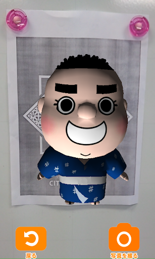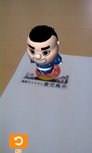 アプリを起動して、イベント開催地にいくつか存在するマーカーにかざすと、西郷隆盛を2次元化したキャラクタがマーカ上に現れます。