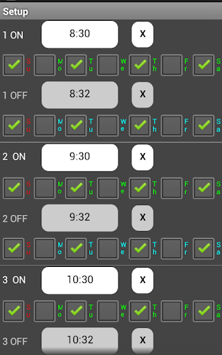 >12組時間依照周期循環方式設定,開啟關閉定時器(另外包括兩組排程存檔及查看顯示時間圖),