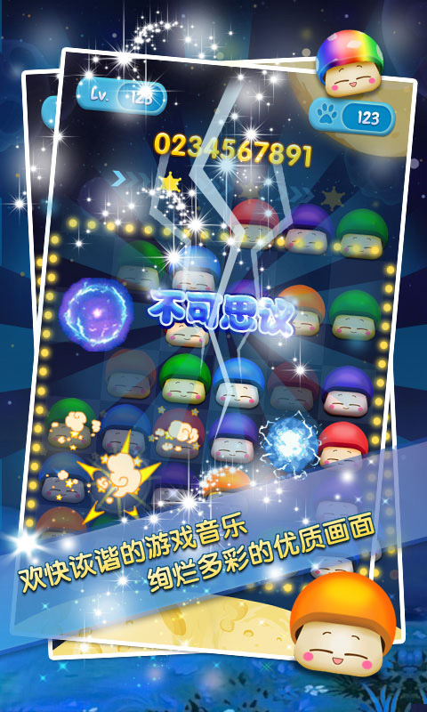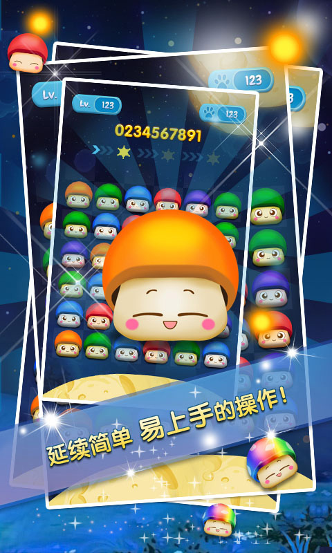 蘑菇对对碰是一款以蘑菇为主题的休闲益智类游戏,和对对碰游戏糖果粉碎传奇candy crush saga一样点击屏幕可消除连在一起的同样的三个及以上糖果;