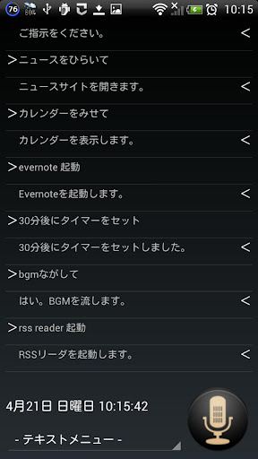 音声認識ボタンを押してしゃべることで、以下のようなことができます。
