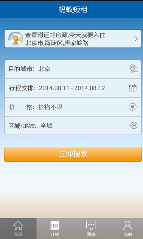 蚂蚁短租 iPhone 应用,支持手机定位周边找房,随时随地线上下单,手机支付。