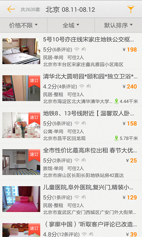 4.短租特色:房间数量众多,分布广泛,并且很多极具特色。如:商业核心区高品质公寓、 高校周边民居或宿舍、海景楼房、花园别墅、林间小屋等。