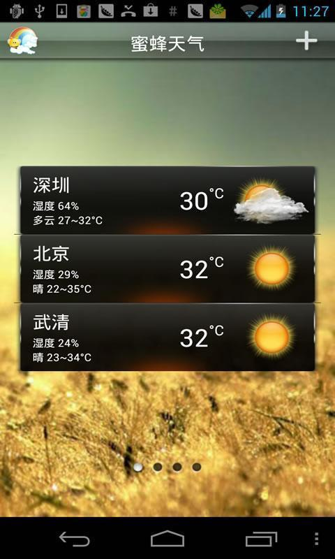 蜜蜂天气是时下最准确、最流行的免费天气预报软件,它采用最准确的气象数据,能预报未来四天的天气情况,同时覆盖全国3000多大中小城市,而且还提供了最贴心的出行、穿衣、洗车、旅游等天气指数。
