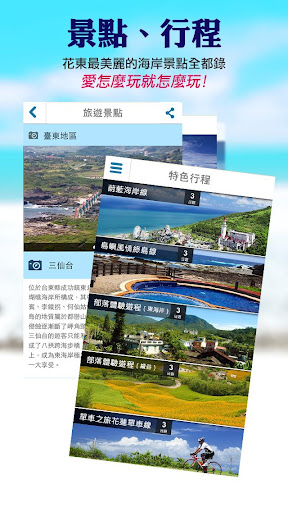 旅遊景點:東海岸旅遊亮點一把抓,迅速查詢目的地。