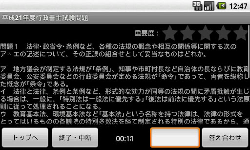 国家資格の行政書士試験(平成21年)の問題が解けます。