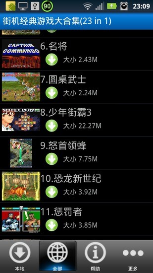 那些年,我们一起玩的街机游戏哪些没有通关的游戏可能成为你心中挥之不去的遗憾,街机经典游戏大全带你重温旧梦,收集最为经典的街机游戏,如待魂,街霸,名将,三国,恐龙新世纪等,不断增加中,直接从服务端下载并自动启动游戏,下载之后即可本地离线运行,无须到处寻找模拟器和游戏rom,注,游戏Rom较大,建议使用wifi或3G网络