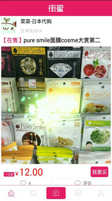 街蜜是国内首家专注做移动互联网的代购平台,也是唯一一家集逛街导购、买手代购与社交沟通于一身的代购神器。目前,街蜜已经在全球20个国家拥有200多名实名认证买手365天日夜不停的扫货直播。类目覆盖美妆、服饰、鞋包、母婴、保健、数码等几乎全类目热门商品。
