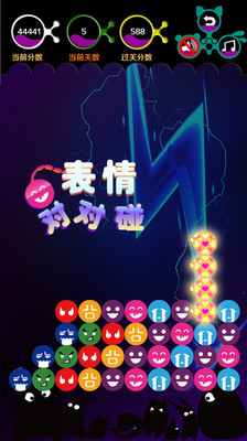 玩法:相邻的两个相同的表情即可消除,同时消除的越多获得的积分越高,随着等级的增高会有更多搞怪的表情出现,过关后剩余的表情越少,赠送的积分越多。快来挑战吧!