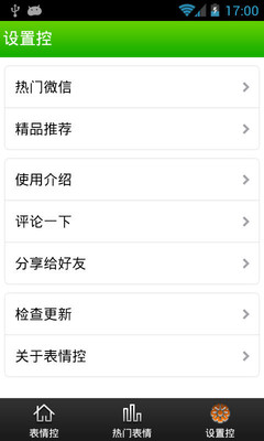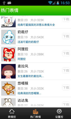 表情控是一款可以在微信、QQ、陌陌、米聊、微博等手机社交软件中发送表情的工具软件,汇集搞笑兔斯基、悠嘻猴、樱桃小丸子、阿狸、洋葱头、可爱麦兜等网络热门表情,海量表情,让你聊天更有范儿!欢迎下载使用。