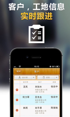 装企小秘书是一款专业装饰企业移动管理工具。一手掌握客户档案、工地跟进、员工行程、外出打卡。企业管理者可以随时随地,通过手机了解公司项目进展以及员工动态,更准更精更优,真正让管理企业做到一手掌握。
