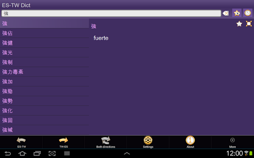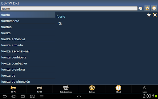 這是 西班牙文 - 中文(繁體) 以及 中文(繁體) - 西班牙文 字典; Spanish - Chinese Traditional and Chinese Traditional - Spanish dictionary / Diccionario Español - Chino (tradicional) y Chino (tradicional) - Español。該應用程式離線,無需網際網路連接。