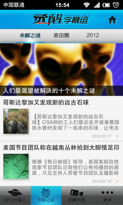 如果外星人来了,如果真有2012,您如何获得最新的信息,没错觉醒字幕组是您的第一选择,我们报道最新最全的UFO外星人、2012、麦田圈等未解之谜,并且提供UFO目击事件报告,通过手机可以上传目击报告,查看最新资讯或分享到新浪微博,客户端内容和评论与觉醒字幕组网站同步,让您随时随地方便的了解各种神秘信息。