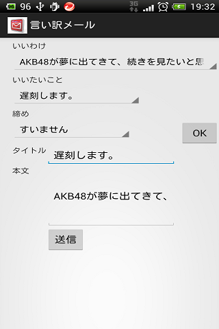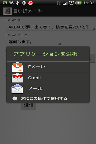 楽々メール送信できるアプリです。