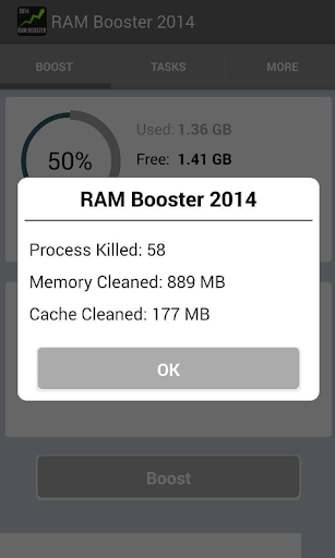 《 公羊助推器 2014年"是 android 實用應用程式,可以增加你的 Android 手機的性能增加關於空閒記憶體或可用的 RAM。此應用程式的快速和容易使用。只需打開該應用程式並點擊大提高按鈕,以釋放記憶體,您的設備上。RAM 助推器,是每個 Android 設備應已安裝的應用程式。在某些情況下它甚至可以清理 50%或更多的您的設備上的可用記憶體。記憶體助推器穿過你的手機,清理你的系統記憶體,增加您的手機或平板電腦,性能和改善您的電池壽命。最好的部分是,它是完全免費 !