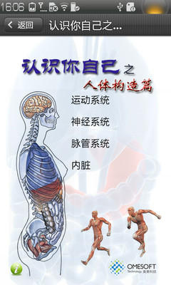 [认识你自己]是由专业人士开发的面向大众健康服务的系列手机应用程序,该系列包括[人体构造篇]、[人体生理篇]、[人体病理篇]、[疾病诊疗篇]、[健康管理篇]等,每个都采用通俗的文笔、精美的图片、方便的流程,是大家认识自我、增进健康的理想助手。