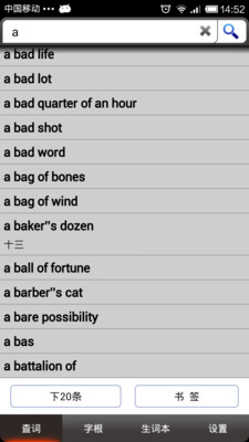 英语词汇包含大量的词根词缀,充分利用单词的构词规律,通过掌握一组单词的共同词根词缀,能够达到成串记忆单词的目的。软件总结了上千余条词根和近上万条包含词根的单词。并引入正向和反向索引,方便举一反三式查询。为了翻看字典时能够选择重点记忆,软件标记了大学英语四级、六级、专四、专八、考研大纲词汇,以及托福、雅思、GRE常考词汇。