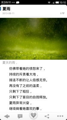 在这里您可以欣赏到许多优美的情诗、伤感的日志、经典的语句,与诗文爱好者一同分享优秀的作品。