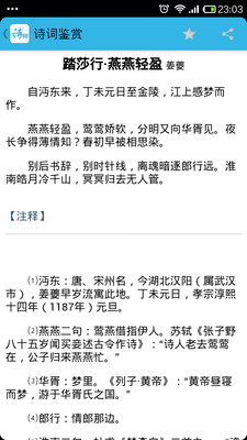 诗词鉴赏是一个以诗词为主的阅读类app,用户可对诗进行搜索和收藏,浏览诗词内容,诗词内容中包含大量赏析和解析,诗词内容丰富,在闲暇之时可以看看诗词歌赋陶冶一下情操,同时软件也支持分享功能,可将用户觉得好的段子分享到各大社交平台中。